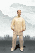 接着调息:吸呼几次,使身心平顺。国体版每个招式复原基本是这个站桩姿势。