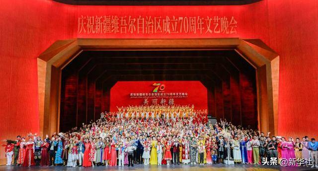 9月24日晚,庆祝新疆维吾尔自治区成立70周年文艺晚会《美丽新疆》在乌鲁木齐文化中心大剧院举行。新华社记者 申宏 摄